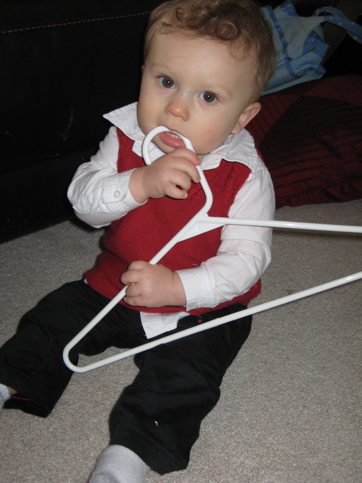 Sometimes when I put him down from his nap he gets upset and will pull his socks off (as shown in this photo) and throw them in protest over the side of his crib.